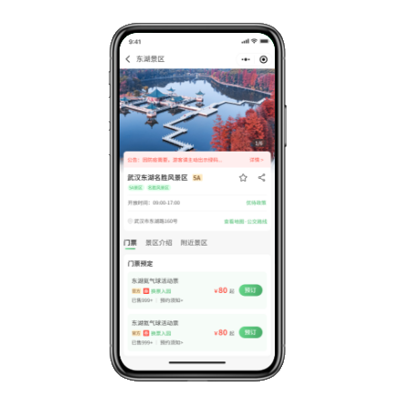 在小程序上直接可以查看景点信息并在线购票、订票,可实现随身随时预订门票功能,进景区只需要扫二维码就可以快速进入,缓解了人工售票压力,节约了大量人工成本。