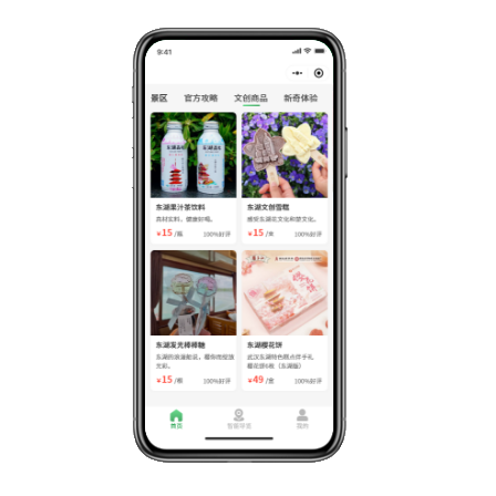 可以在小程序上购买到各景区专属的文创产品和本地特产,可线下取货,也可以通过快递邮寄到家。有效传播景区文化、树立景区良好形象。